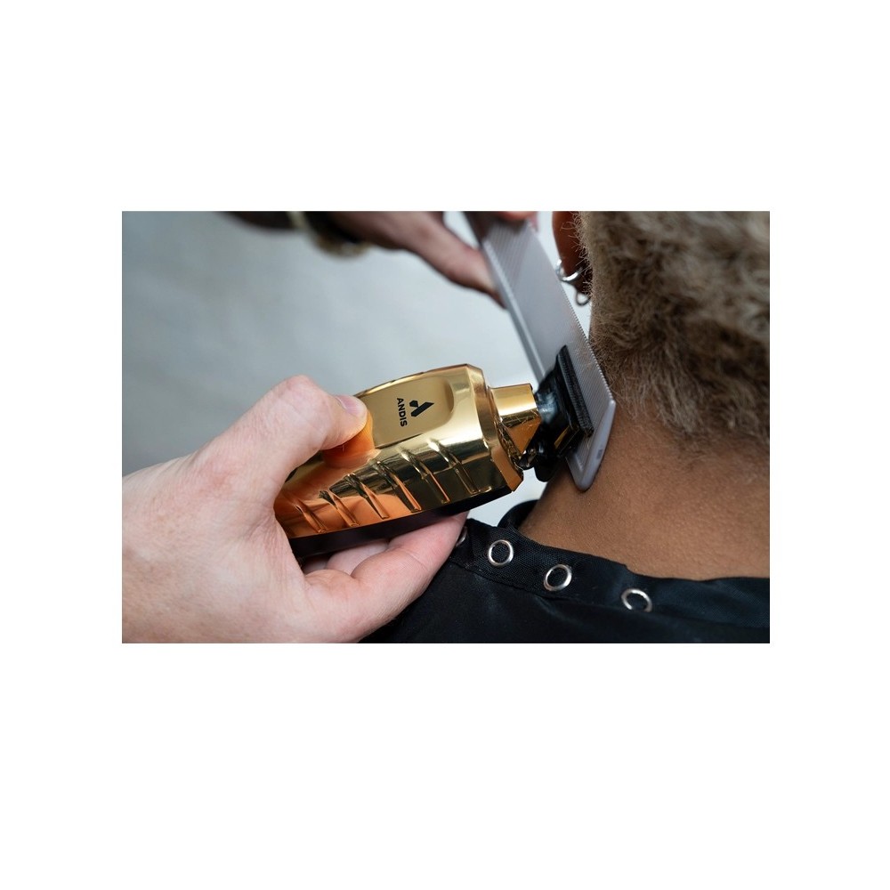 La Andis GTX-EXO II Gold Trimmer est une tondeuse de finition haut de gamme conçue pour les barbiers qui exigent précision extrême, puissance constante et finition parfaite.